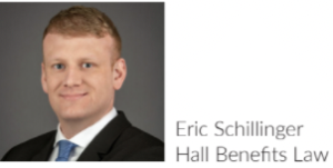 Eric Schillinger, ERISA Counsel, Hall Benefits Law Eric Schillinger concentrates his practice in the areas of qualified, health and welfare, and nonqualified employee benefit plans, includingpension, defined contribution, deferred compensation, health care, life insurance, disability, fringe, and other employer-provided benefits. He has extensive experience in helping employers comply with the various federal and state laws applicable to those plans, such as the Patient Protection and Affordable Care Act (ACA), ERISA, the Internal Revenue Code, the Securities Act of 1933, the Public Health Service Act, HIPAA, COBRA, FMLA, and Medicare.